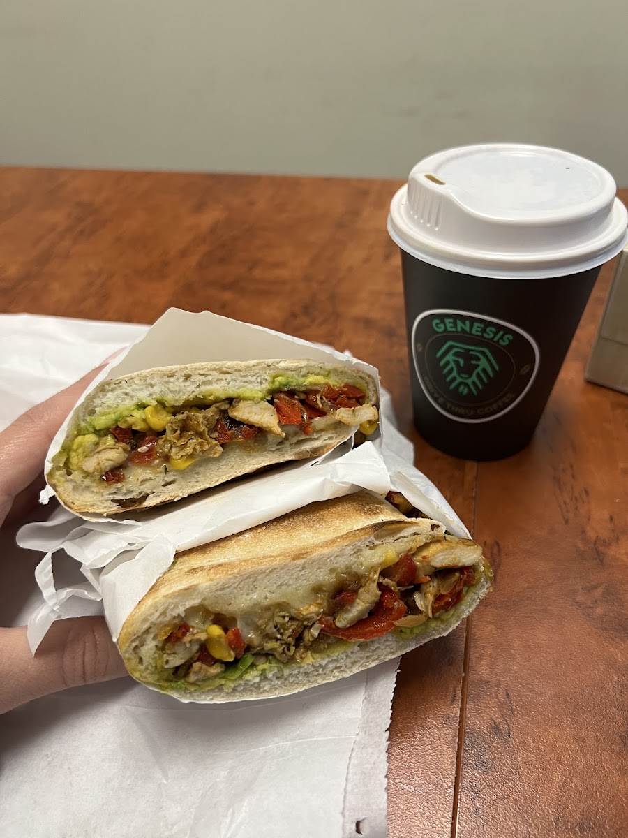 Genesis Drive Thru Cafe offers a curated menu that focuses on wholesome, quality ingredients. Their sandwiches are perfect for a lunch break on the go, featuring tasty options like Chicken & Salad and Roast Veggies.